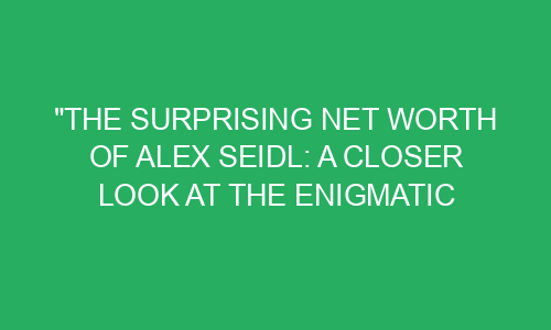 The Surprising Net Worth of Alex Seidl: A Closer Look at the Enigmatic Fortune Behind the Name Introduction: Welcome, young readers, to a fascinating tale of wealth and mystery! Today, we will embark on a journey to uncover the surprising net worth of Alex Seidl. You may have heard the name whispered among grown-ups or
