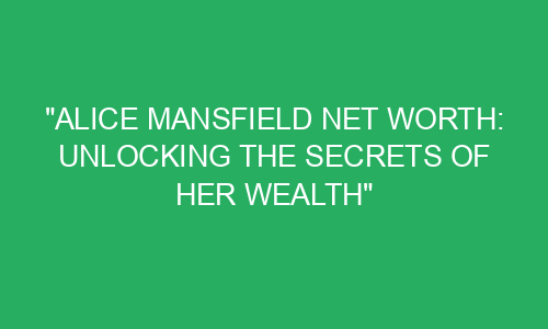 Alice Mansfield Net Worth: Unlocking the Secrets of Her Wealth Have you ever wondered how some people become incredibly rich? Well, Alice Mansfield is one such person. She is a self-made millionaire who has amassed a fortune over the years. In this blog post, we will delve into the secrets of Alice Mansfield’s wealth and
