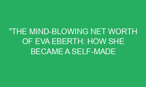 The Mind-Blowing Net Worth of Eva Eberth: How She Became a Self-Made Millionaire Introduction: Have you ever wondered how some people manage to achieve mind-blowing net worth and become self-made millionaires? Well, one inspiring example is Eva Eberth, a remarkable entrepreneur who has achieved unprecedented success in her life. In this blog post, we will
