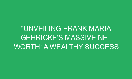 Unveiling Frank Maria Gehricke’s Massive Net Worth: A Wealthy Success Story Introduction: Have you ever wondered what it feels like to be incredibly wealthy? Well, let’s dive into the fascinating story of Frank Maria Gehricke and his colossal net worth. Frank Maria Gehricke is a remarkable individual who has achieved immense success in his life.