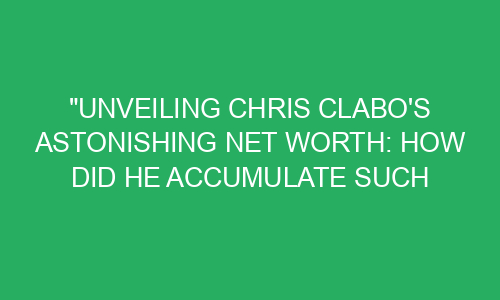 Unveiling Chris Clabo’s Astonishing Net Worth: How Did He Accumulate Such Wealth? Introduction: Have you ever wondered how some people accumulate enormous wealth? Today, we will explore the astonishing net worth of Chris Clabo and delve into the secrets behind his fortune. Chris Clabo is a successful business tycoon and investor, known for his incredible