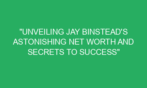 Introduction Once upon a time, in a small town called Harmonyville, lived a man named Jay Binstead. Jay was no ordinary man – he was a successful entrepreneur and had amassed a fortune through his hard work and determination. Today, we will delve into Jay’s astonishing net worth and explore the secrets to his success.