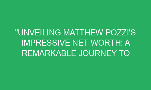 Unveiling Matthew Pozzi’s Impressive Net Worth: A Remarkable Journey to Financial Success Introduction: Matthew Pozzi, a name that resonates with financial success and inspiring accomplishment. Have you ever wondered how he managed to achieve such an impressive net worth? In this blog post, we will delve into the fascinating journey of Matthew Pozzi’s rise to