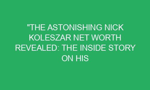 The Astonishing Nick Koleszar Net Worth Revealed: The Inside Story on His Financial Success Have you ever wondered how some people manage to accumulate huge amounts of wealth in their lifetime? One person whose financial success has been the talk of the town is Nick Koleszar. His incredible net worth has left many people in