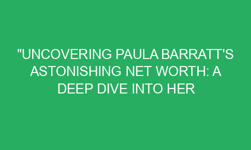 Uncovering Paula Barratt’s Astonishing Net Worth: A Deep Dive into Her Wealth and Success Have you ever wondered how some people manage to accumulate vast amounts of wealth? How do they become so successful? Today, we are going to take a closer look at Paula Barratt, a renowned entrepreneur, and philanthropist, to uncover the secrets
