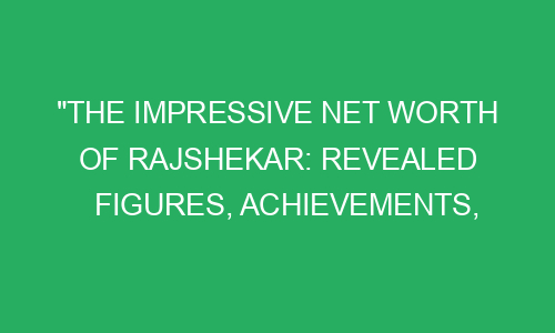 The Impressive Net Worth of Rajshekar: Revealed Figures, Achievements, and Success Story! Introduction: Meet Rajshekar – a name that has become synonymous with success and wealth in the business world. With his remarkable achievements and impressive net worth, Rajshekar has become an inspiration for aspiring entrepreneurs and business enthusiasts. In this blog post, we will